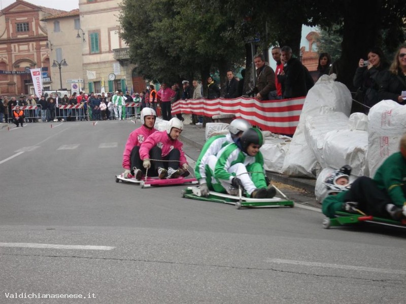 Negli anni '50 era uso dei ragazzi del paese, le discese ripide e la poca motorizzazione lo consentivano, divertirsi con "carretti" costruiti con assi di legno e cuscinetti fuori uso. Ben presto iniziò una rivalità tra i rioni del centro storico, che sfociò in una gara corsa in occasione della festa del Patrono, San Martino. La tradizione si interruppe per qualche anno per riprendere a metà degli anni '60 con carretti più evoluti: ruote di notevole diametro con cuscinetti incorporati, lo sterzo tipo automobile, freni a pedale, sul tradizionale percorso di Via San Martino, Via Ciro Pinsuti. I mezzi che correvano ed il percorso, in selciato di pietra, non erano, però, più idonei per rispettare la sicurezza degli spettatori. Nel 1982 con la rinascita dell'attività della Pro-Loco la formula fu cambiata con un ritorno all'antico; carretti tradizionali con cuscinetti a sfere e struttura in legno, il percorso nella sede stradale in asfalto con partenza da Piazza Garibaldi sino all'Osteria delle Grotte. Dal 1997 la Carriera di San Martino si svolge con i rioni.Ogni rione ha a disposizione 4 carretti più uno di riserva. Il sabato mattino precedente la Carriera è dedicato al montaggio dei box mentre nel pomeriggio si effettuano le prove generali. La domenica mattina verifica delle caratteristiche dei carretti, benedizione degli equipaggi e prime 12 discese. La domenica pomeriggio seconde 12 discese e finali. Il rione vincitore viene premiato con coppe e stendardo dipinto da un pittore del luogo.