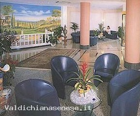 The Hotel Aggravi, situated in the heart of the thermal town of Chianciano, in a quiet and central area near the Spa, with a beautiful panorama of the lakes. It offers its guests a warm welcome with highly qualified service and all modern comforts, solarium, TV room, tavern, small gymnasium, meeting room for up 50 people. Bar, spacious lounges, garden, lift, heating, private parking and garage, air-conditioned dining-room and an agreement with the olympic sized public swimming-pool. All rooms have private bathroom, radio, colour TV, small terrace and direct-dial telephone. The management and the typical Tuscan cuisine are both personally supervised by the proprietors.