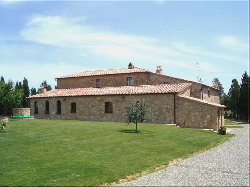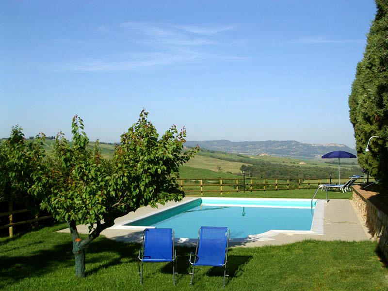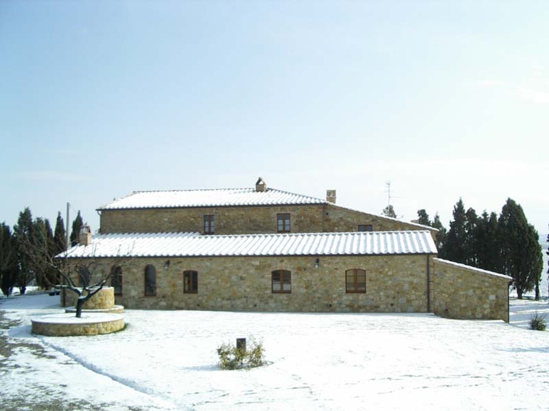 The estate is located in the middle of an enchanting landscape on a hell under cypress trees; lounging in the cool shadows in the garden or totally relaxing along the edge of the swimming pool, you can admire the green slopes and the Crete des Val D’Orcia, Monte Amiata in its majestic glory and the sunset in all its unforgettable colours.