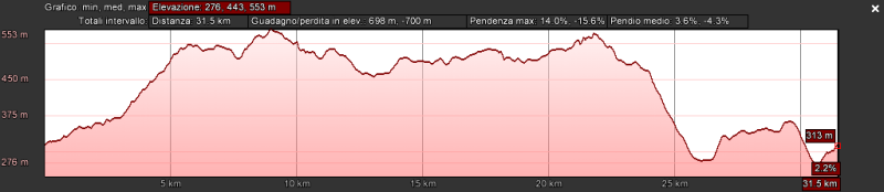 Single path to the large number of monuments and places encountered along the way. In fact you touch as many as four historic centers rather characteristic, to which if you want you can aggiungrere with a small variation that of Sinalunga. The session takes place on all paved roads with little traffic, except for a few hundred meters from the junction and to dell'Amorosa Rigaiolo. In addition to the historical centers, touching two jewels of medieval architecture: Abbadia a Sicille and the former Grange dell'Amorosa. The only thing to note, concerning the difficulty of the trail: steep hills, accompanied by dry winding.