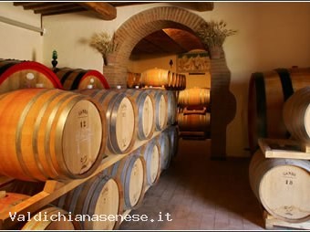 La cantina è di grande suggestione: inizia in un eremo medievale, attraversa il sotterraneo della villa cinquecentesca e poi sale fino al sotto tetto del Vin Santo. La tinaia ha attrezzature di ultima generazione ed un panorama mozzafiato sulle Crete Senesi.