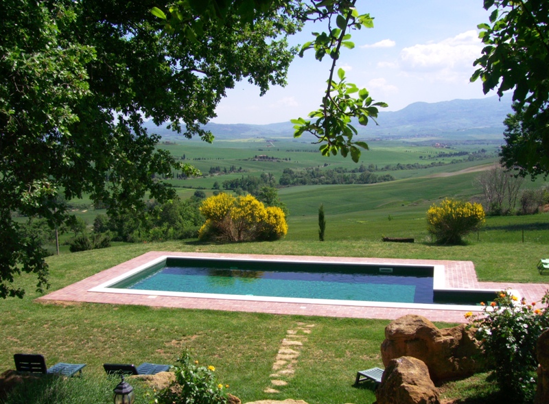 It is situated in a wonderfully panoramic position in the middle of the Artistic and natural Park of The Val d'Orcia, within easy reach of towns and villages (two kilometres from Pienza, two from Monticchiello, ten from Montepulciano).Thus gives its guests the possibility of combining a healthy and relaxing holiday with visits of artistic interest, cultural meetings and walks in a beautiful countryside.