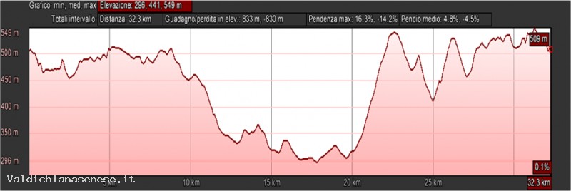 You start taking away to our left Marino Hats successivamenteMassimiliano Massai - mountain bike trails Montepulciano - Monticchiello it passes over a bridge and you go right at the intersection for about thirty meters. Then again right in the reeds on which you follow until you come to the temple of San Biagio where you go to the right in the alley with cypresses that leads us to a crossroads. We take the national road to Pienza and follow it for about 100 meters then turn left on a road and down a lot s.bartolomeo pedal at the end of a steep descent becomes a dirt road and climbs up to a lookout point and then down and then back (with a final strappetto on asphalt with a slope of around 20%) Monticchiello. You can 'go to the right to visit the beautiful town but the route goes' downhill left, after passing a junction, go left on dirt road in the hill climb to fly decided we always follow the main dirt road and after a stretch slight slope begins to descend sharply in an open setting with breathtaking views over the Val d'Orcia and Monte Amiata. to a farm after leaving the main dirt road to get onto the grassy field in some places it becomes a fairly technical singletrack for the presence of stones covered with grass. Come to another farm is around the left to merge onto a dirt road more 'than a large following in the next fork until you get right after a nice up and down a paved right to follow. almost reached the foot of the slope that would bring us back to Monticchiello, turn left on dirt road is the field that after having forded the river Tresa takes us to a paved take right towards Pienza for about 1.5 km. at a crossroads, take a dirt road on right (signposted agr. Casalpiano) that we follow through. When they reached the farm we go to first left on a slight slope is not prohibitive then climb up in the vicinity 'of the farm continues until the house is at a crossroads where you turn right uphill. Continue past the farm property is up to the main road where you go right towards Montepulciano. A few km after the junction of asphalt, then rest for a winery and you go left on dirt road reported that after passing some farm brings us back (after a treacherous tear) in the reeds on the left and you should soon reach the point of departure.