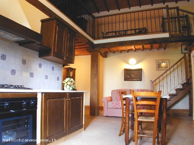 Ogni appartamento dispone di un soggiorno-pranzo, camera matrimoniale, camera con 2 letti singoli, bagno con doccia. Arredati con mobili toscani di origine contadina, accessoriati inoltre da: frigorifero, forno ventilato, TV e lavatrice in uso comune.