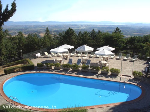 Though completely surrounded by the parkland of the Tuscan countryside, guests have the possibility to reach easily the centre of the village by foot, to enjoy the many Spa facilities of Chianciano Terme, San Casciano dei Bagni, Sant’Albino, Bagno Vignoni, Bagno San Filippo, or to visit art cities which are a short distance away like Siena, Arezzo,Perugia, Assisi, Montepulciano, Pienza, Montalcino, as well as many less well-known towns but just as beautiful and rich of precious testimonies from the past.
