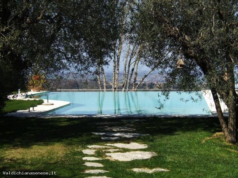 With origins dating back to the early Middle Ages, the Villa is located a short way from the splendid 16th-century pearl, Montepulciano, and a few kilometres from the most beautiful towns in the province of Siena: Pienza, Cortona, Montefollonico, Monticchiello and Montalcino. Over the centuries, the families who owned the villa transformed it into their country residence, the frescoes, coats of arms and paintings all bearing witness to them. The spacious rooms furnished with antique furniture take their names from the panorama that you can enjoy from the windows: Montepulciano, Cortona and Montefollonico; as well as from some architectural details: the chimney, capitals, balconies and well; or the surrounding countryside with his vineyards, walnut trees and cypresses. The Italian garden with its elegance and geometry opens up before the small church, a wonderful piece in the architectural mosaic. The swimming pool with Jacuzzi is immersed in the olive grove with a view looking over the Tuscan countryside. Guests can make use of the hut, chimney room and cellar for reading and tasting the famous "Tuscan Red Wines".