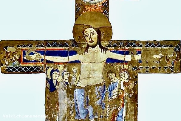 The painting comes from the Romanesque church of San Pietro in Villore, a vernacular corruption of San Pietro in Vincoli. The building, still well preserved, stands just outside San Giovanni d'Asso: a medieval village straddling the Crete Senesi and the Val d'Orcia.
