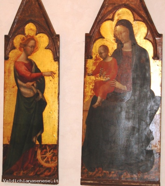 Due pannelli cuspidali facenti parte di un grande polittico smembrato e raffiguranti, rispettivamene di santa Caterina d'Alessandria nel pannello più piccolo e la Madonna in trono col Bambino, nell'altro. Degli altri pannelli componenti il polittico si sono perse le tracce. Alcuni esperti sostengono che altri 2 pannelli dello stesso polittico sarebbero quelli conservati nella Chiesa parrocchiale di Civita Bagnoregio.