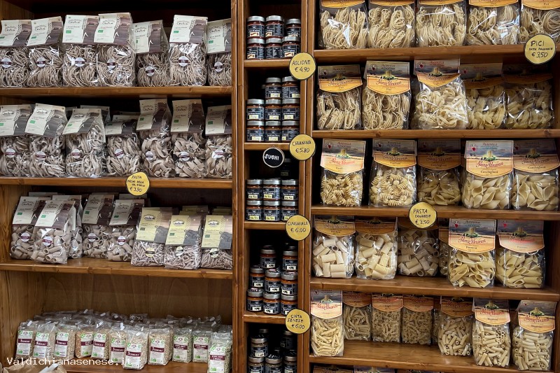 In our assorted shop you can also find many typical artisan products of the Val d'Orcia, such as: organic dry pasta, extra virgin olive oil, a variety of wines, jams and jams, sauces and typical sweets.