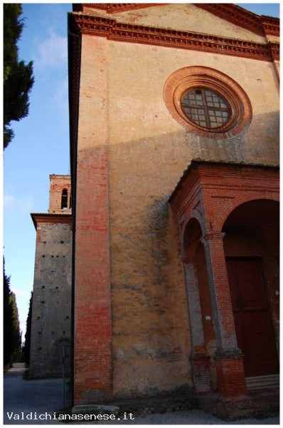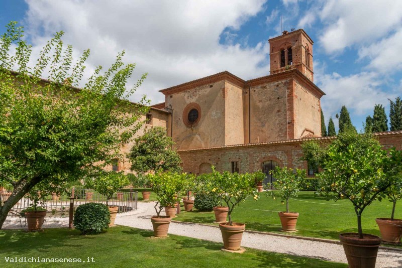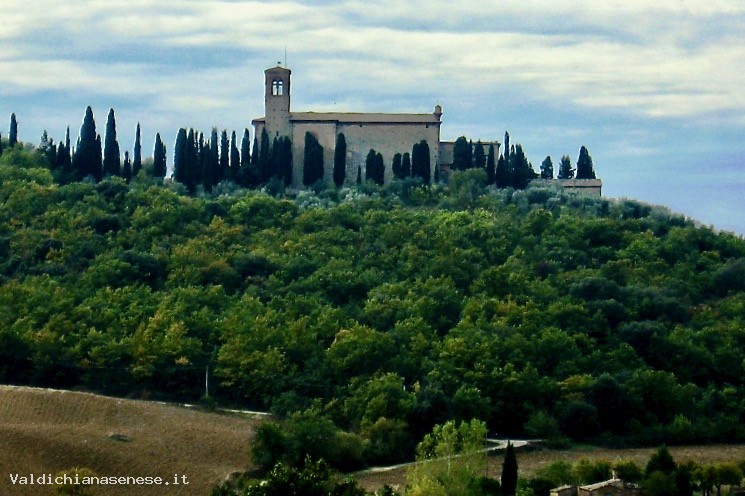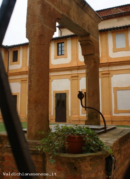 The monastery of Saint Anne in Camprena is a sacred building, located in Camprena, in the township of Pienza, in the province of Siena,in the diocese of Montepulciano-Chiusi-Pienza. It was founded in 1324-1334 by Bernard Tolomei as a hermitage linked to the Benedictine order of the Congregation of Monte Oliveto. It was radically modified between the end of the XVth century and the beginning of the XVIth century and , later on, at the end of the XVIIIth century and beginning XIX th century, it underwent further modifications. The construction of the church was completed in 1517. The frescoes in the dining hall by Sodoma are quite important. They were realized between 1502 and 1503. They include the following : The Approval of Mount Oliveto’s rule created by Tolomei , by the bishop of Arezzo Guido Tarlati; The Deposition; A Madonna with Child, Saint Anne and two monks; three scenes from the Multiplication of Bread; and a grisaille decoration with Stories of the Life of Saint Anne, surrounded by “ grotesque” decorations.