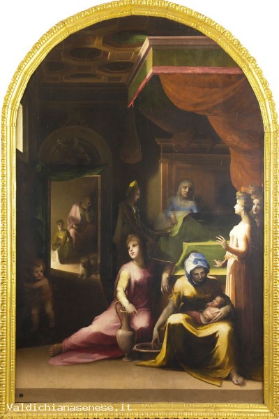 The present church has the facade of travertine and brick with columns and Doric capitals. A nave, contains two paintings on wood by Jacopo di Mino del furrier, a Madonna and Child known as the Madonna of the Goldfinch (1344), and an altarpiece dedicated to the Madonna delle Grazie; an arched panel by Andrea di Niccolò with the Madonna and Child with Saints Rocco and Sebastiano (second half of the fifteenth century); the celebrated Sarteano Annunciation by Domenico Beccafumi (about 1545); the Visitation of the Virgin to St. Elizabeth of Matteo Rosselli (first half of the seventeenth century |); the Madonna and Child in glory and Alessandro Casolani saints (last quarter of the sixteenth century).