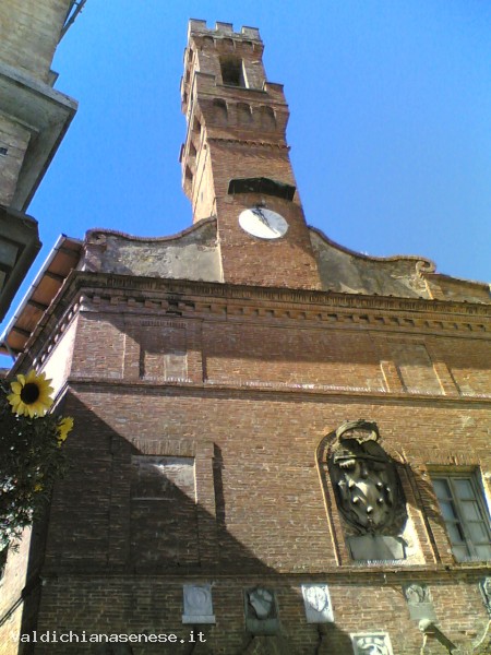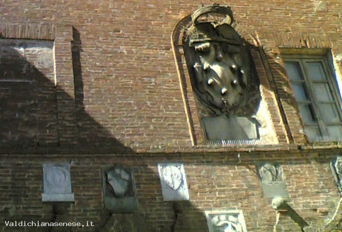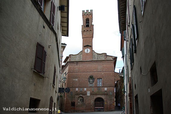 In the historical center , rises the bell tower of the medieval Pretorio Palace . The palace was built between 1337 and 1346 and it was restored during the XVth and XVIIth century. It was the civil authority headquarters ; on the main facade and on the eastern side of the palace are visible many coats of arms of the various Bailiffs present during the Republic of Siena and during the Medici times. Quite remarkable is a pillory, that stands on the right hand side of the main portal, where real or presumed criminals were exposed for mockery.