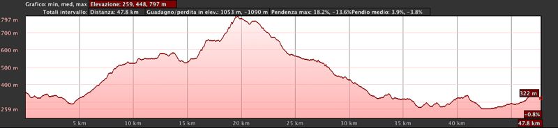 Percorso tortuoso in mezzo al verde di boschi e prati collinari, che porta a visitare località piutt