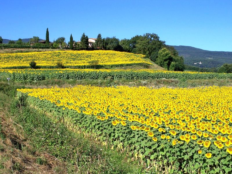 Tortuous path in the green hills of woods and meadows, which leads to visit places isolated but rather fascinating. Departure from the center of Chiusi and the SS 146 follow the signs for the 'A1 and Chianciano, after about 1 km turn left towards Cetona the bridge on the highway after a further mile, we come to a crossroads where we maintain the right. We cross the river heading towards Astrone Cetona. Reached the village proceed towards San Casciano dei Bagni: road with various alternations of slope that reaches the village of Squares; arrived at the village continue for approximately 7 miles until you reach San Casciano dei Bagni. Visited the old town which is located at the intersection back at the beginning of the country and take the SP 89 that runs along the mountain and brings up to Cetona Sarteano where we continue to Chiusi again crossing the 'A1 places to Pine Oaks.