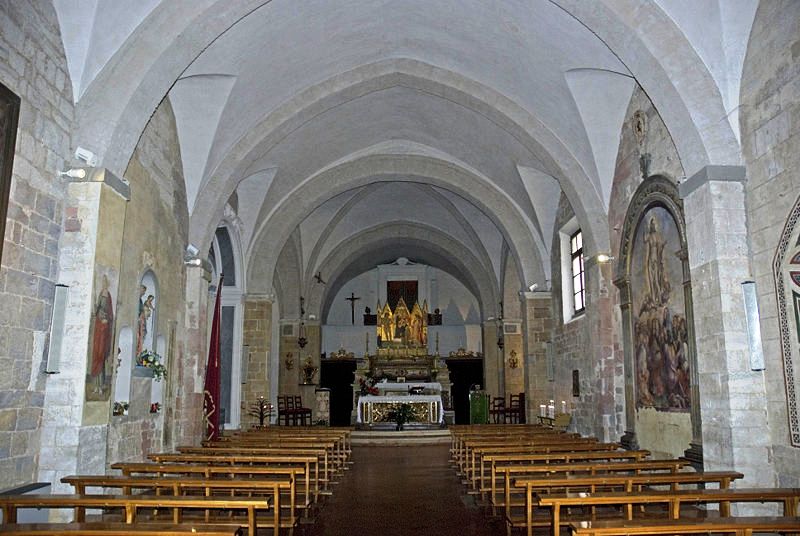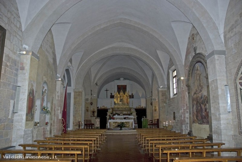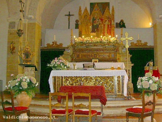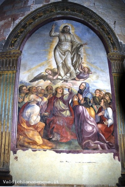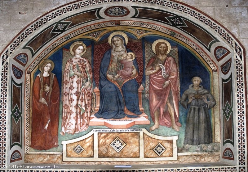 The Church also preserves the Polyptych by Giovanni di Paolo di Grazia (1399-1482), the remarkable fresco of the Madonna and Child enthroned and the saints Catherine of Alexandria, Mary Magdalene, Giovanni Battista, Bernardino da Siena, by the Umbrian painter Bartolomeo da Miranda from 1449, the fresco of the Ascension by Giovanni Antonio Bazzi known as Sodoma.