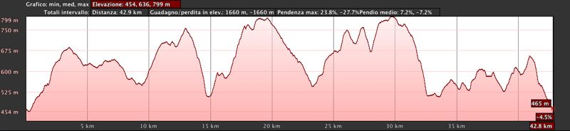 Sarà di circa 43 km e 1400 m di dislivello, con classica partenza da Sant’Elena per salire fino all