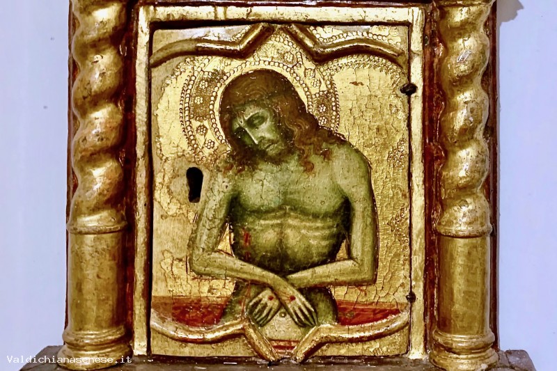 Frammento di una predella, ritagliata per ricavarne lo sportello di un tabernacolo. Modifica effettuata nel XVI secolo.