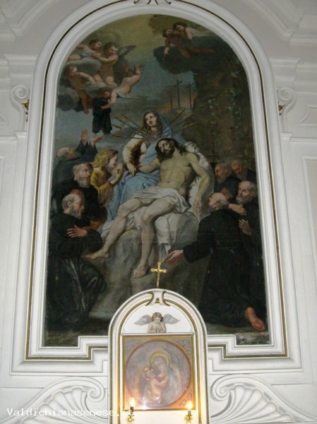 Vi sono conservati un affresco con la Madonna della Santoreggia, di scuola senese del XIV secolo, una Madonna col Bambino attribuita alla scuola di Duccio di Buoninsegna e un Crocifisso trecentesco ad affresco.
