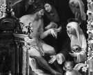 Pietà di Cristo e santi: da sinistra: santa Teresa d'Avila, san Giovanni evangelista, santa Maria Maddalena, santa Maria Vergine, suora domenicana, santa Caterina da Siena, putto recante una corona, putto recante un libro. In alto sulla sinistra due figure maschili con gli strumenti della passione; sulla destra in alto il monte calvario con le tre croci.