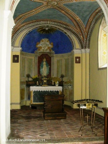 E' uno dei monumenti più suggestivi di San Casciano. L'unica navata è arricchita da due cappelle laterali, una delle quali, dedicata alla Madonna, è elegantemente decorata sullo stile del Duomo di Siena, con i caratteristici colori bianco e nero. L'abside circolare è stato ricavato sfruttando una delle torri circolari del sistema difensivo.