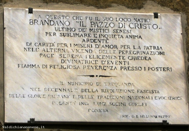 Al termine della scala d'accesso al Cassero, si trova la piccola statua in terracotta di Bartolomeo Garosi detto il Brandano, famoso ed eccentrico predicatore medioevale.
