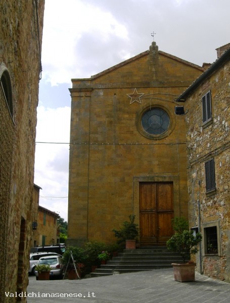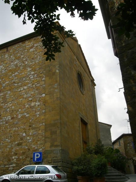 L'interno, a croce latina e ad un'unica navata, è stato rimaneggiato nel corso dell'Ottocento. Sulla parete presbiteriale sono stati collocati gli affreschi staccati dalla chiesa di Sant'Andrea, di ambito quattrocentesco senese;